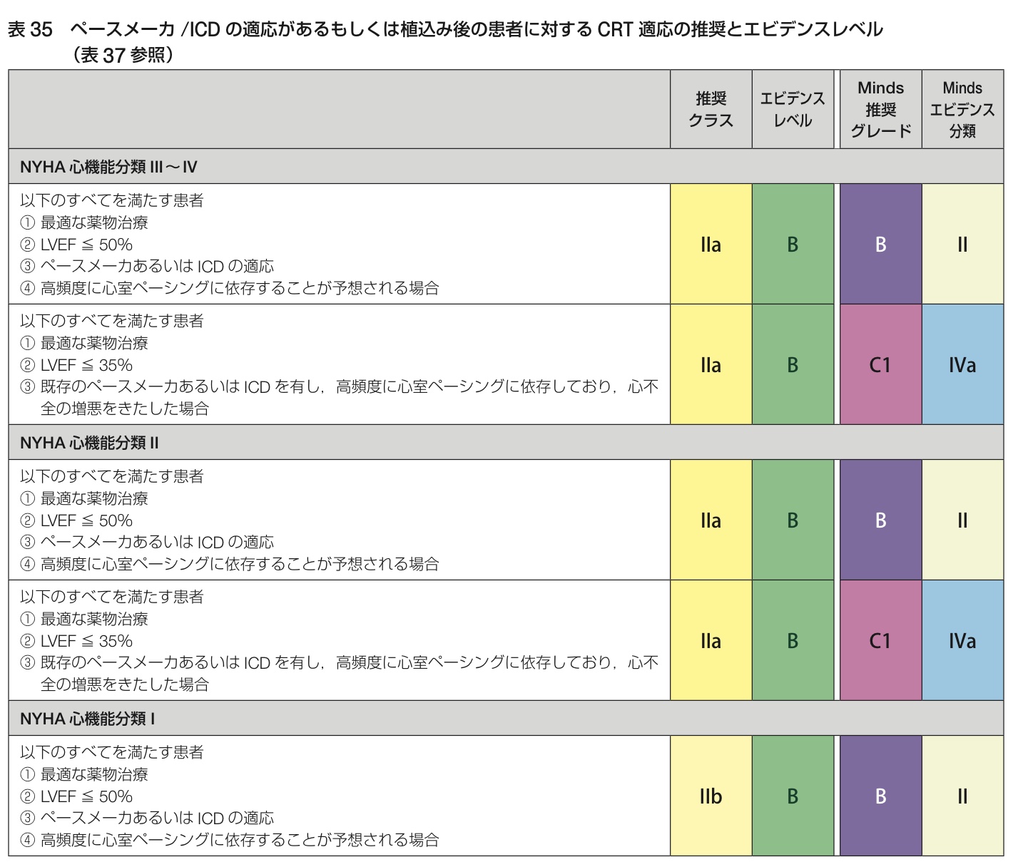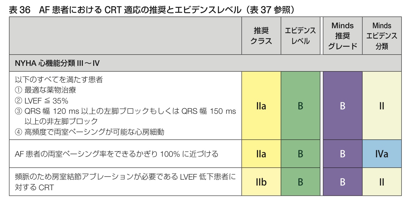 →心機能が低下(LVEF<50%)し, 心室ペーシングが新規に必要な場合はCRTが考慮される.