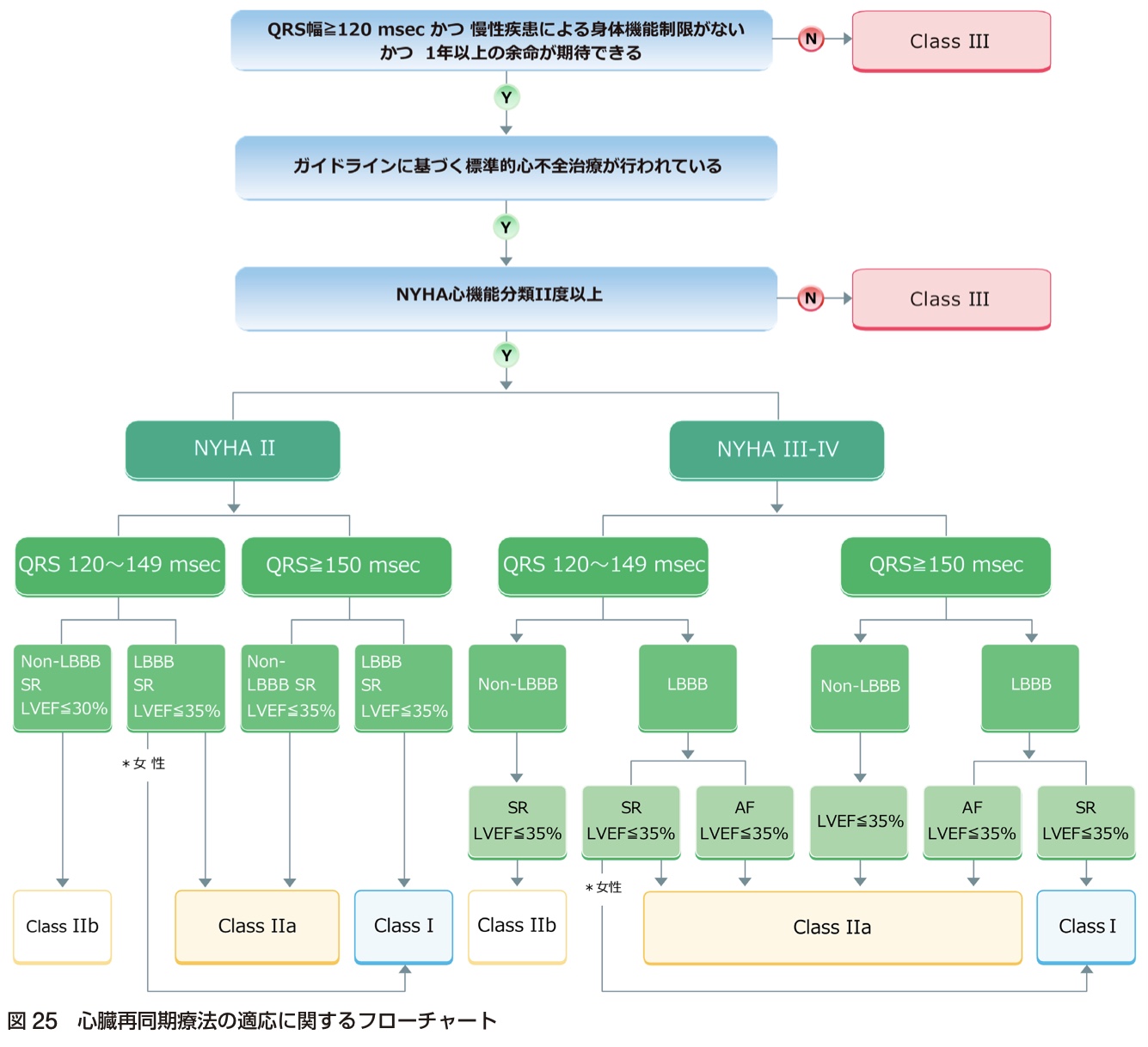 NYHAⅡ度以上の, LVEFの低下したQRS 120-150msec以上のCLBBB症例に有効である.