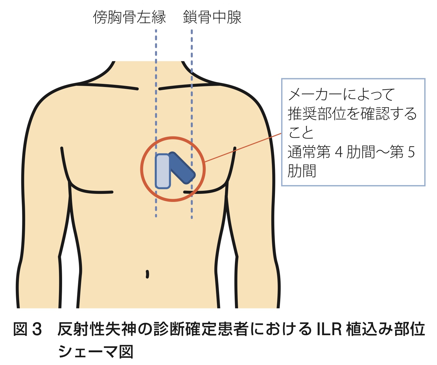 植込み型ループレコーダ(ILR:implantable loop recorder)は通常の心電図や長時間心電図では検出が困難な発作的な不整脈を検出するために皮下に挿入される心電計機器.